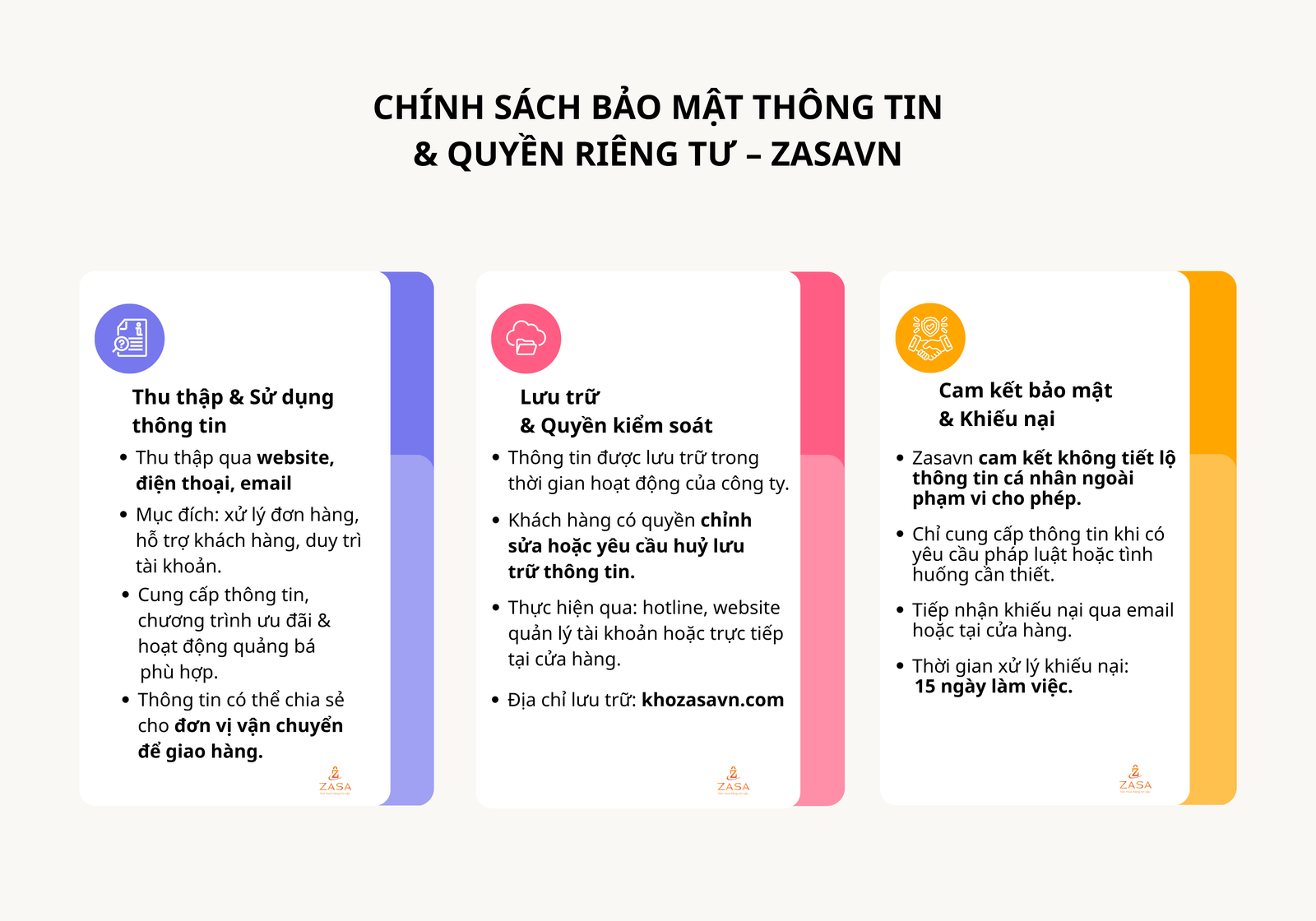 Quý khách có quyền gửi khiếu nại về việc lộ thông tin cá nhân đến Zasavn qua địa chỉ cửa hàng hoặc qua email.
