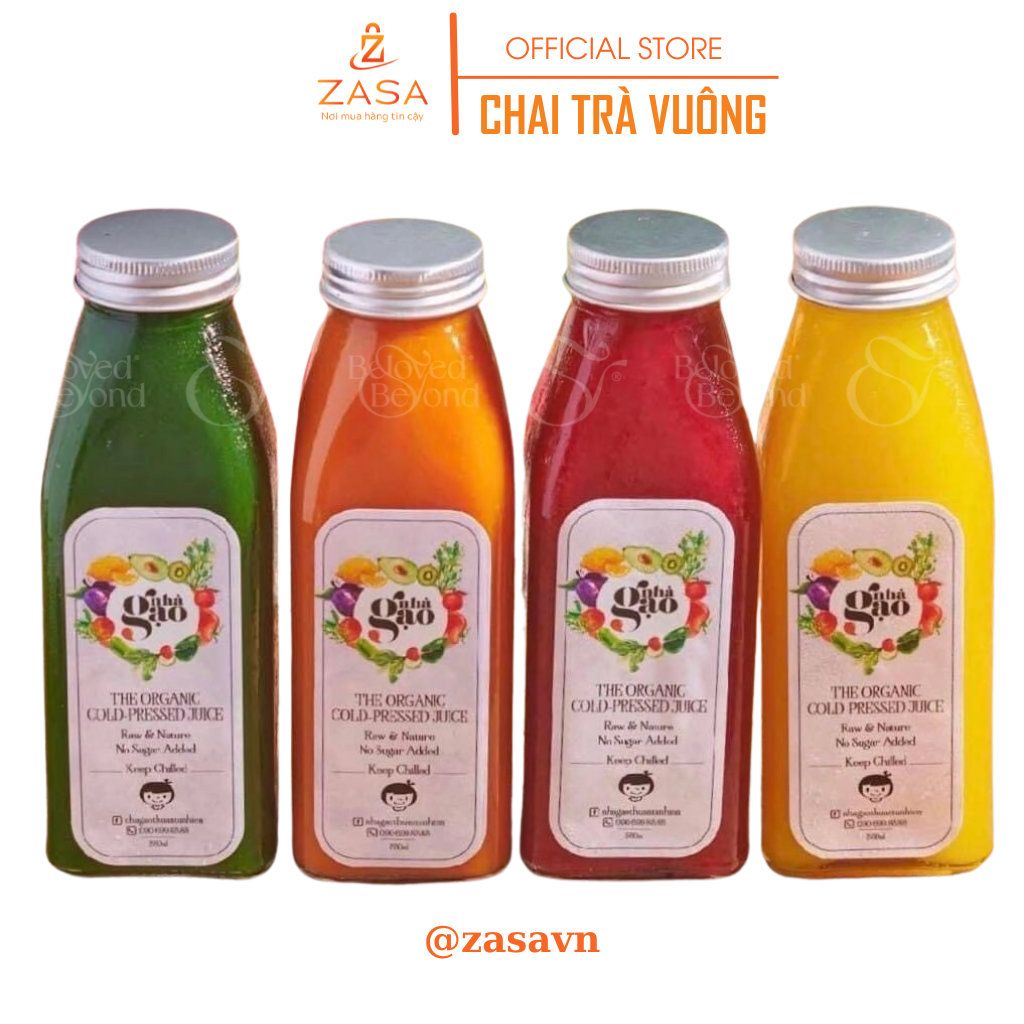 Chai thủy tinh trà vuông 350ml, nắp nhôm bạc – Zasavn